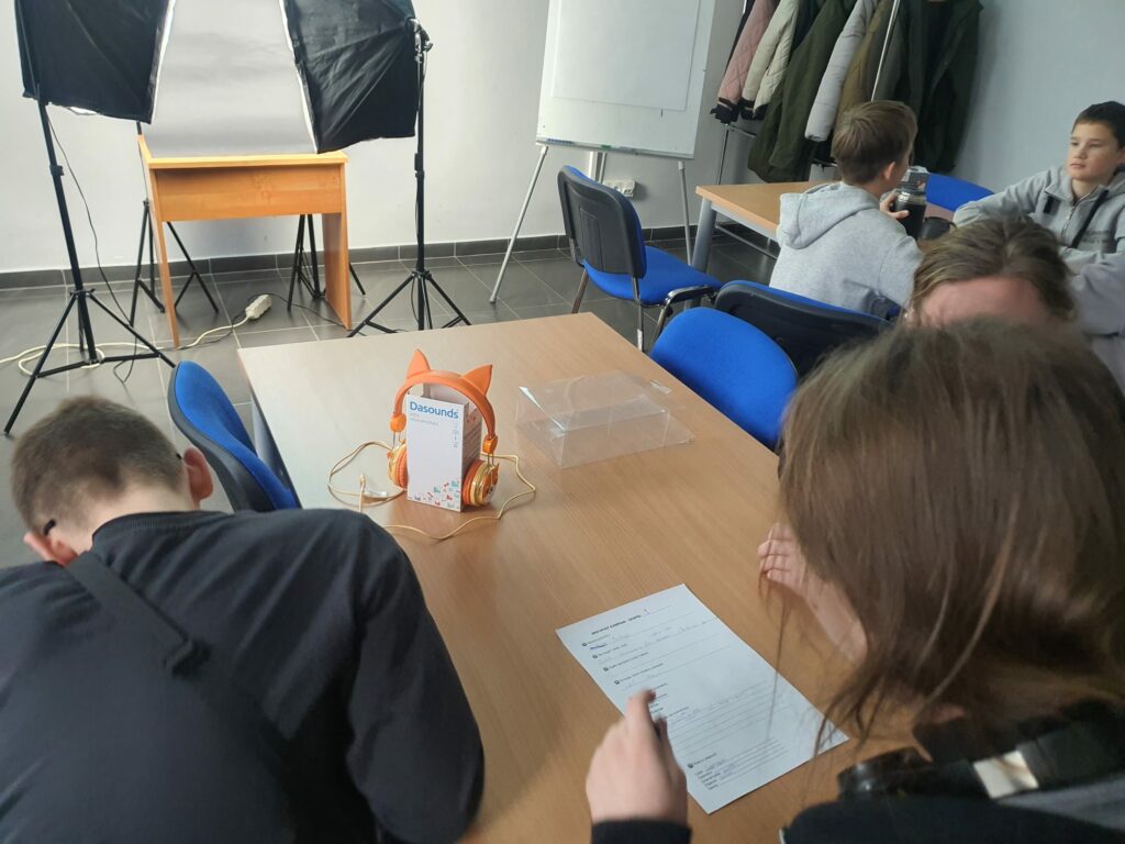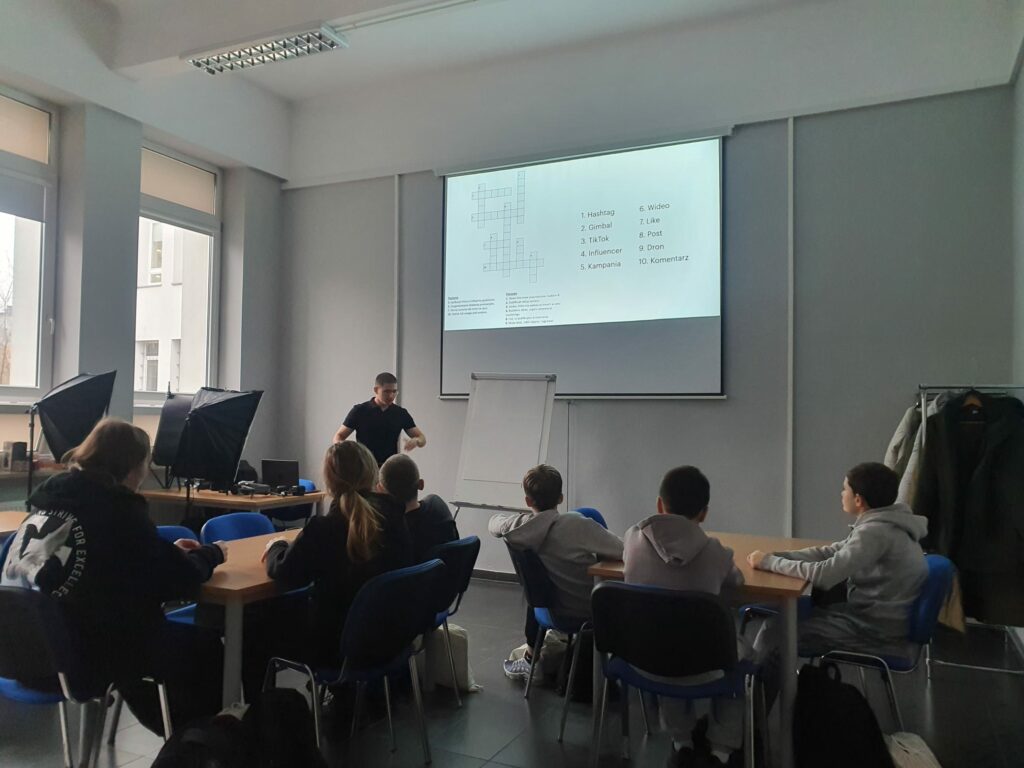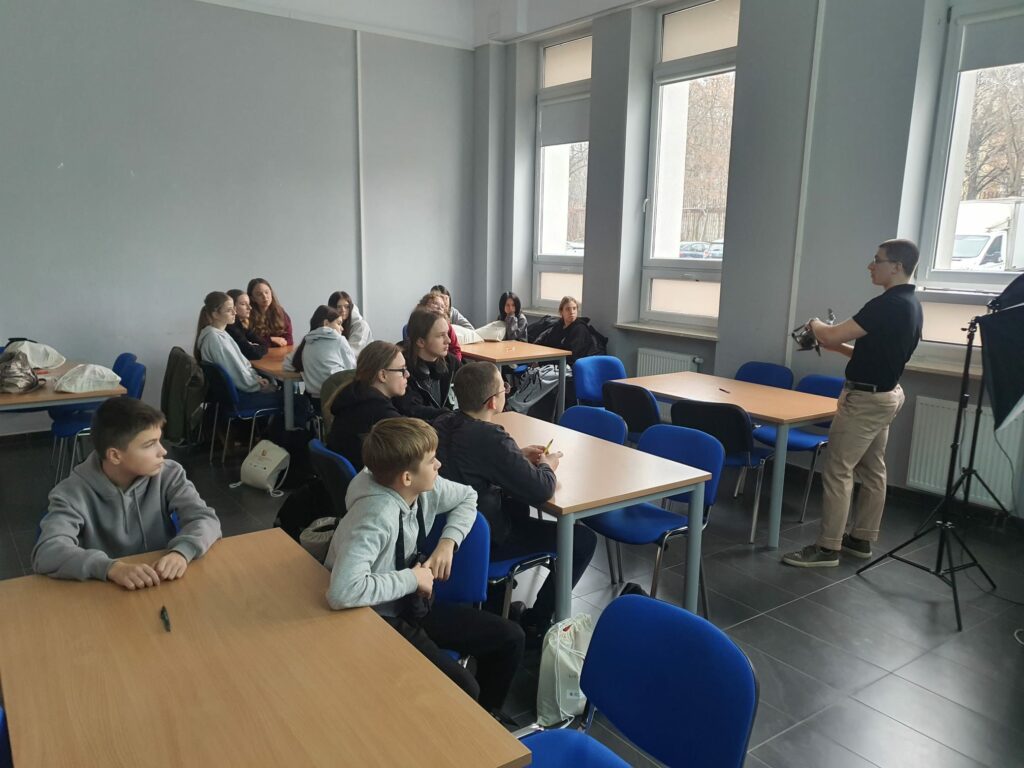 Uczniowie klasy 8c uczestniczyli w zajęciach z przygotowywania filmów promujących produkty w agencji reklamowej Watros w Lublinie.