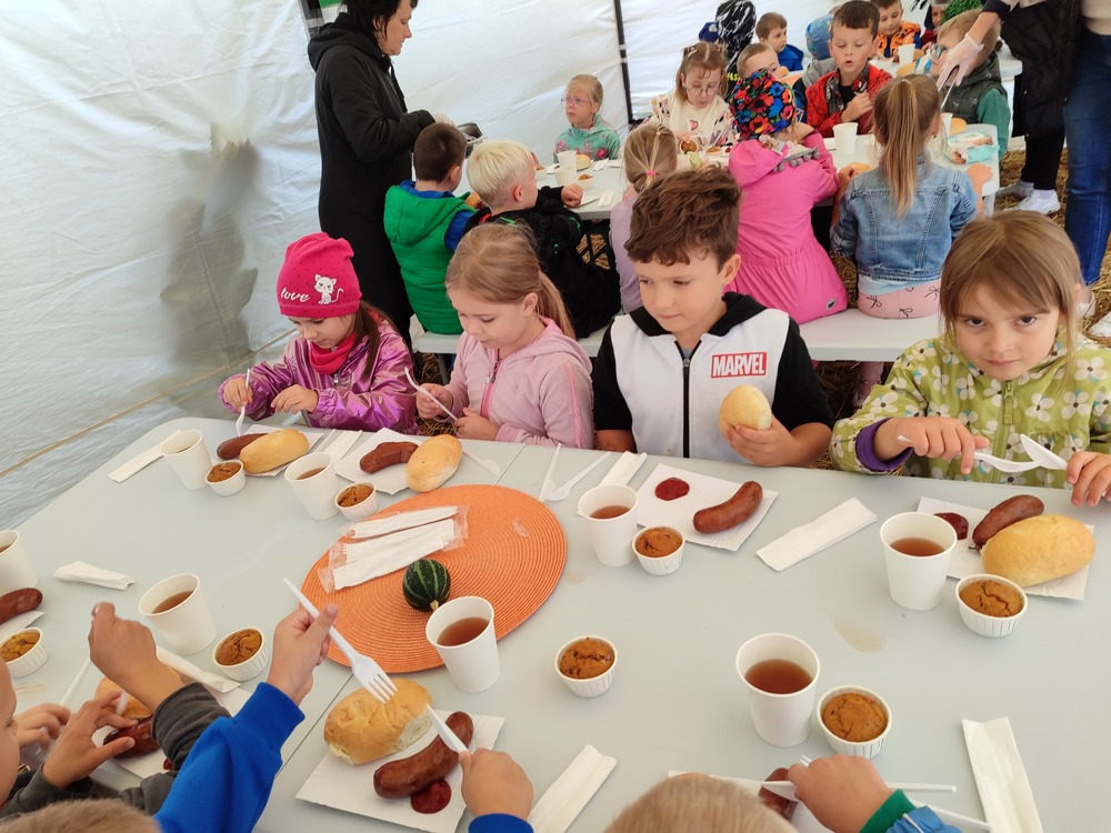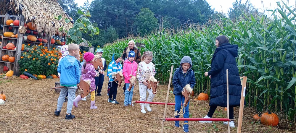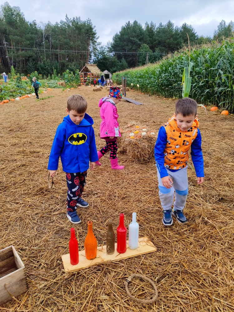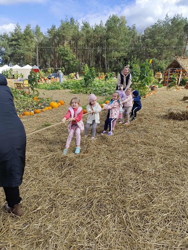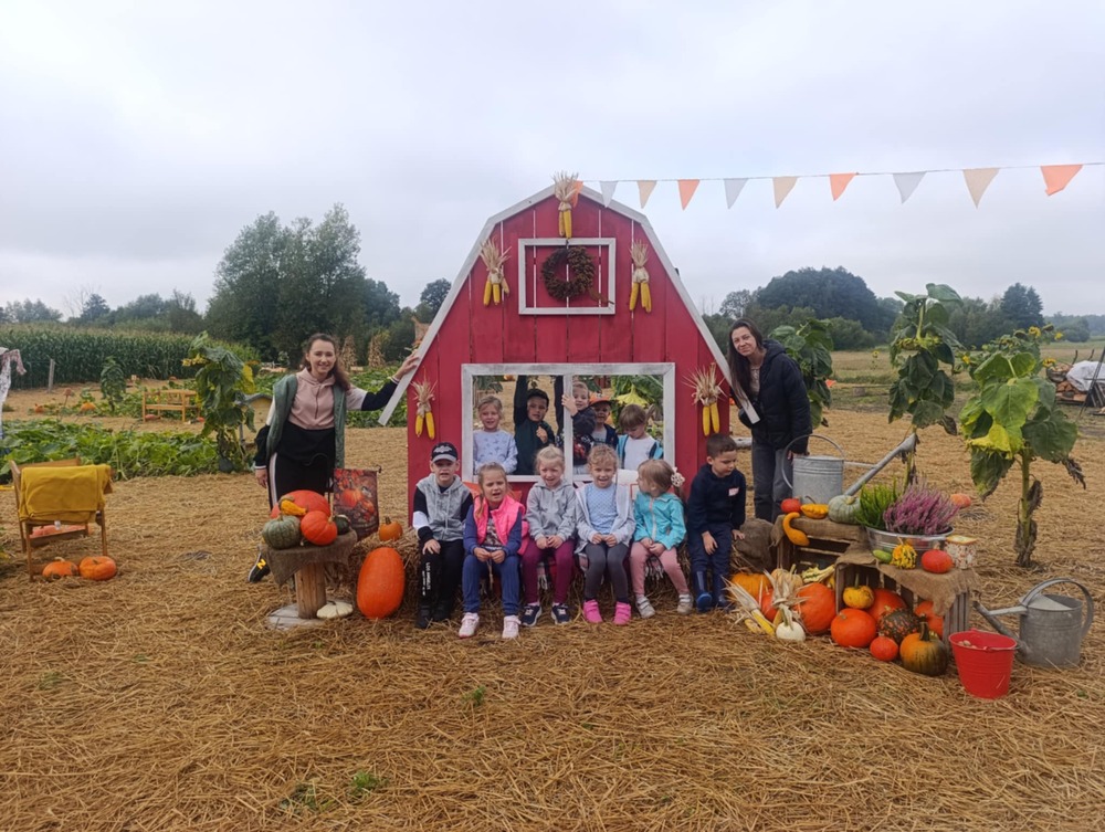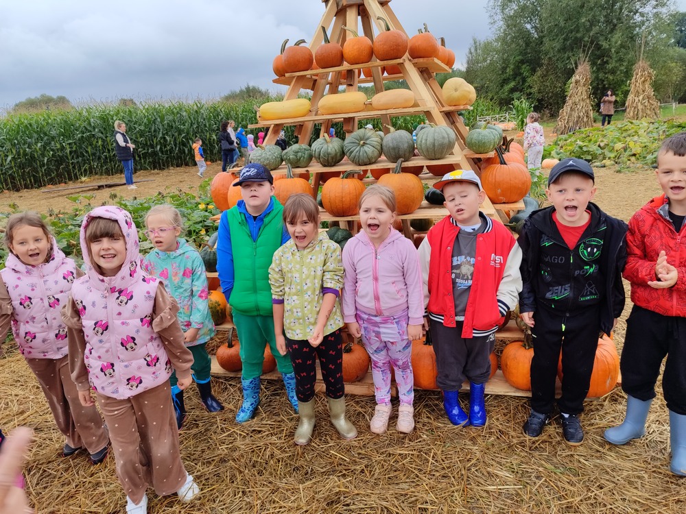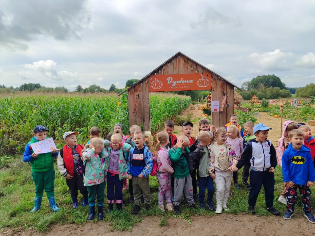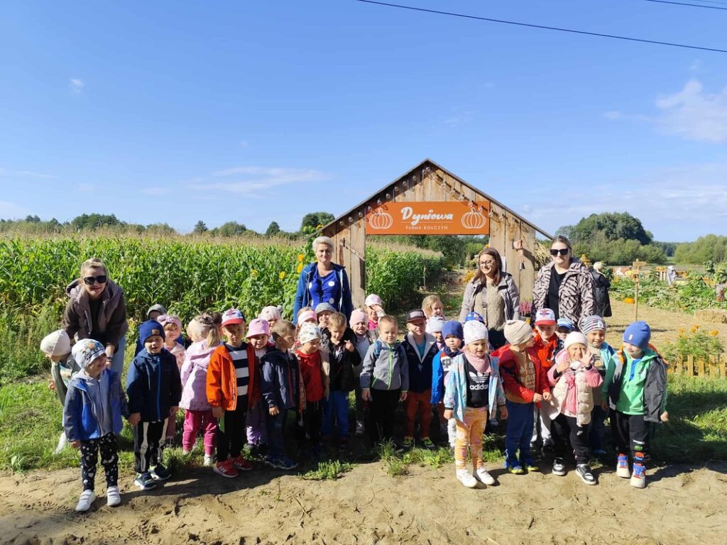 W dniach 12, 15 i 17 września przedszkolaki z Orzeszkowego Przedszkola udały się na wycieczkę do Farmy Dyniowej w Kołczynie. Dzieci spędziły czas na zabawie, edukacji i bliskim kontakcie z przyrodą. Zapoznały się z różnymi rodzajami dyń, pracą pszczół oraz oglądały tamę bobrów. Największą atrakcją okazały się zabawy na świeżym powietrzu: kuchnia błotna, dojenie krowy, labirynt w kukurydzy oraz dyniowe gry. Na zakończenie odbyło się ognisko z kiełbaskami i dyniowymi babeczkami. Dziękujemy, że mogliśmy razem odkrywać dyniowy świat – takie spotkania pokazują nam, ile radości daje wspólne poznawanie natury.